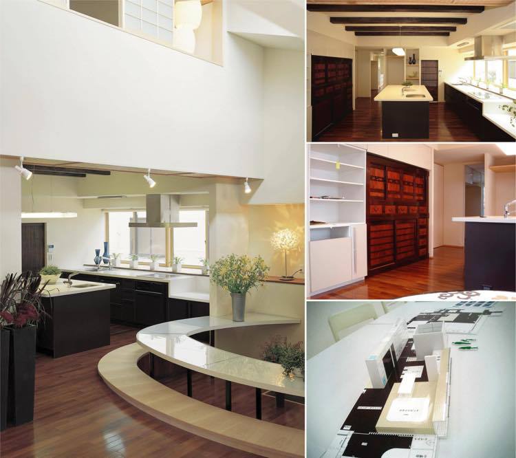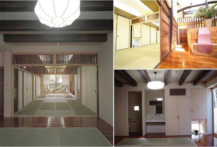 施主様から和風であること瓦屋根が好きであること旧家の調査により再利用できる材料が豊富にあることと大きな仏壇の移設と様々なイベントのための和室や農家であるので野菜を調理するまでの家事室の動線の検証を行いました。仏間周りのプランはほぼ写しにし旧家の記憶を伝承することを考えました。