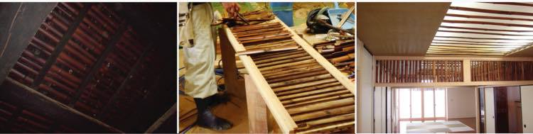 旧家に大量の煤竹を発見しました。欄間や天井の仕上げ材に贅沢に使用されています。