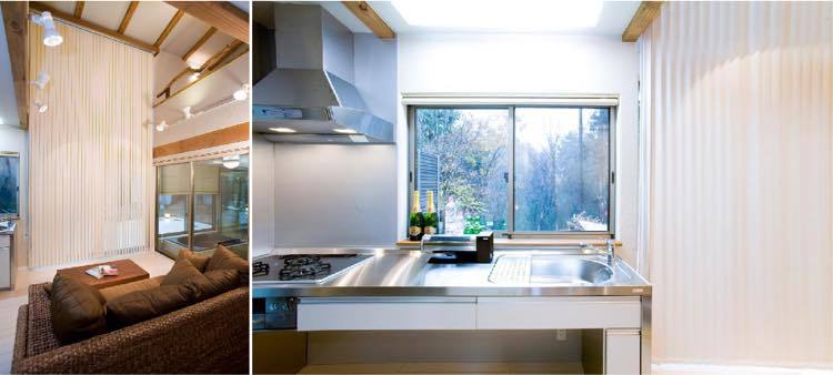 プライベートが守られる森林側に大きな開口をきな開口を持ってきましたが、日差しの調整にパーーチカルブラインドを用います。