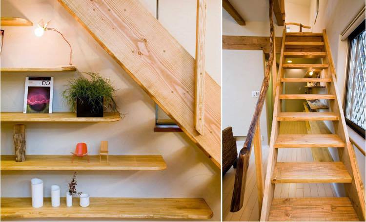 スケルトンの階段にして、階段下を扉なしの収納スペースにして部屋の広がりを増すようにしてます。