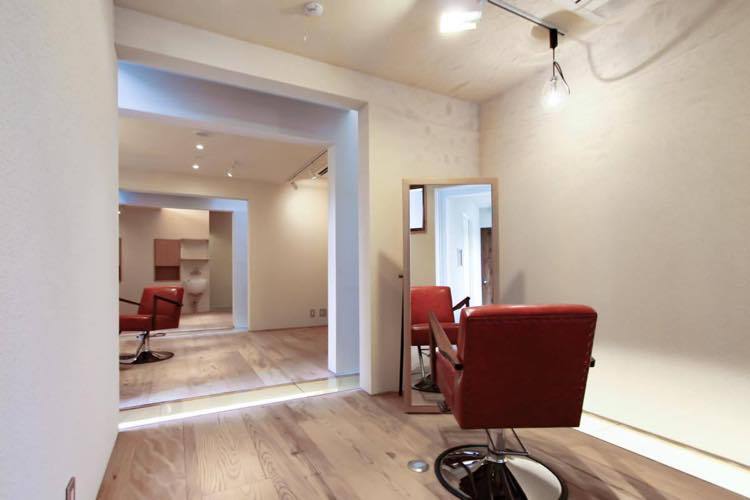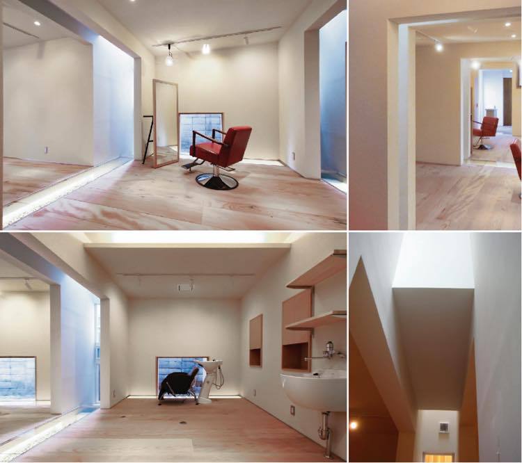 各部屋の開口の大きさ、天井高も変えています。各部屋で一人ずつカットをし、染髪は、一番奥の部屋で行うようにしました。