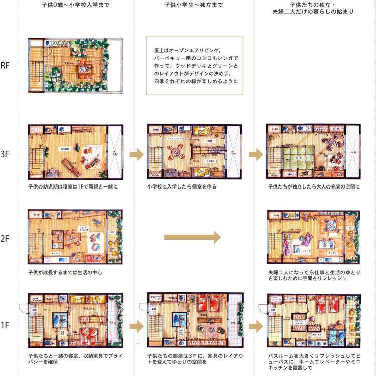 「CELL」は、パーツを交換することでプランが変化します。本体となる「BODY」は柱なしの空洞です。若い標準家族の場合、子供たちが独立するまでに3回プランを変えます。自分自身でプランニングすることで喜びに満ちた生活を手に入れます。また、リセットし次の世代にも渡すこともでき、標準家族以外の家族構にも柔軟に対応します。