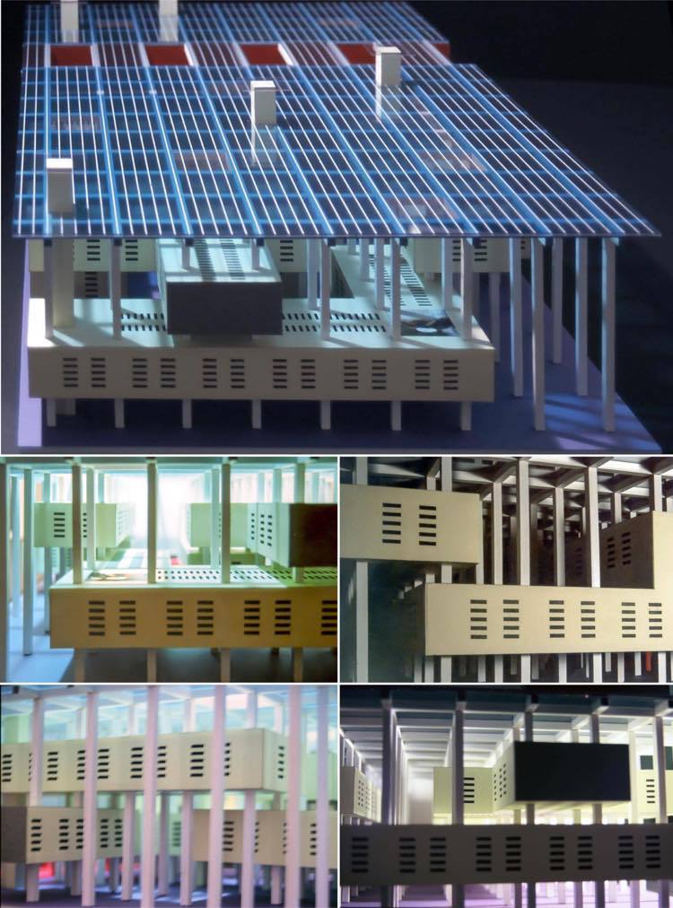 成長する活動領域の模型写真です。透明化された広場から太陽光エネルギーと風を巡回させます。